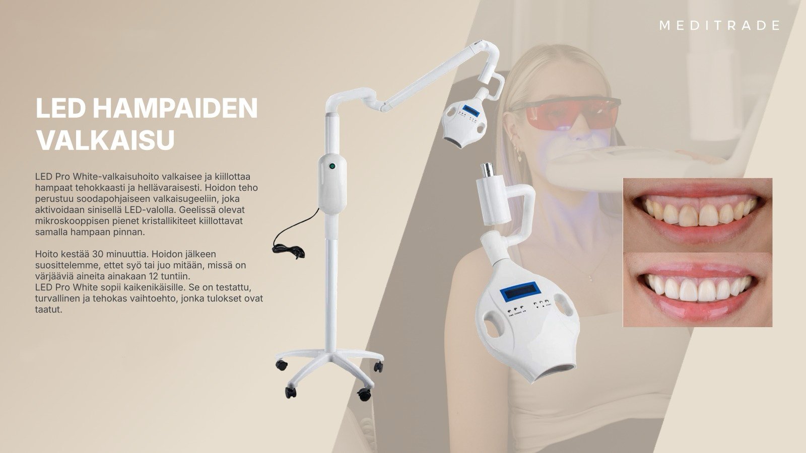 Hampaiden kevytvalkaisu on nopea ja turvallinen tapa raikastaa hymyä ja kirkastaa hampaiden sävyä. Hoito poistaa pinnallisia värjäytymiä ja tuo hymylle luonnollista kirkkautta – ilman voimakasta käsittelyä.